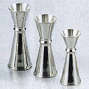 お酒やジュースを計量するための器。 金属製で異なる容量のカップが背中合わせになっている。 45ccと30ccが量れるタイプと 30ccと15ccが量れるタイプをよく使う。 |