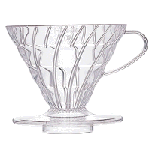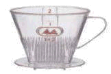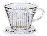B最近はハリオからも多彩な商品が出ています。上記二つとはことなり、フィルターは先がとがった、三角形(円錐形)をしていて、ドリッパーの穴は大きなものがひとつあり、フィルターの穴を通じてお湯が落ちるというより、ドリッパーにのせた〔引っ掛けた)フィルターを通じてお湯が落ちます。ドリッパーの穴でのお湯のコントロールが出来ないため、少し上級者向きのドリッパーです。ただし比較的マイルドでクリアな味が出来るという評判もあります。