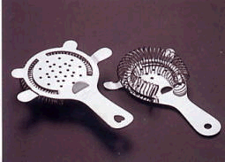 ステアしたカクテルをグラスに注ぐ際、ミキシンググラスに フタのようにはめて中の氷を押さえる器具。こし器。 シェーカーのストレーナー部分と同じ役目をする。 |